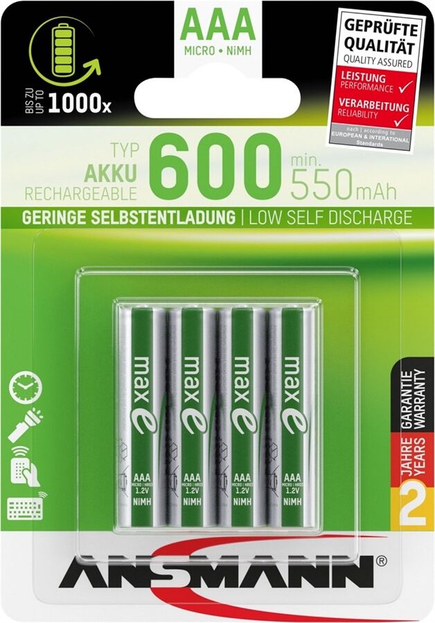 • Hochwertiger Micro Akku mit maxE Technologie – aufgrund der sehr geringen Selbstentladung steht nach eine Jahr noch rund 80% der Anfangskapazität zur Verfügung