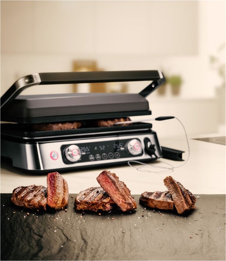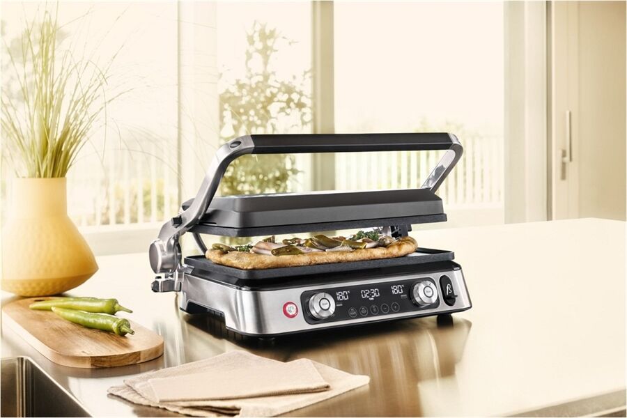 Maximale Vielseitigkeit dank Kontaktgrill- und Backofenposition bzw. ganz aufgeklappt als Tischgrill.