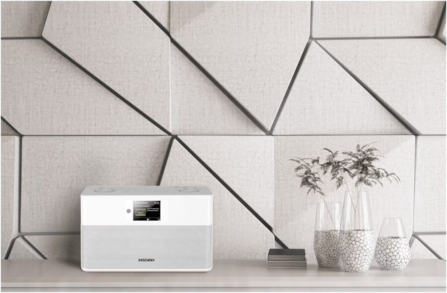 Für einen erstaunlich erwachsenen Sound mit einem angesichts der Gehäusegröße satten Tieftonfundament sorgen der integrierte 2 x 10 Watt-Verstärker und hoch belastbare Stereo-Lautsprecher mit einem Bassreflexsystem.