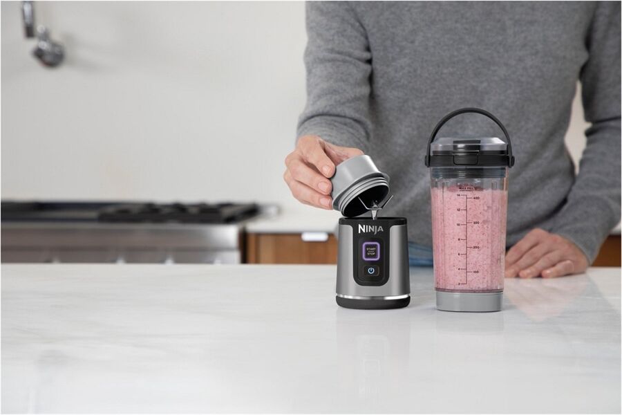 Waschen Sie den Becher, den Deckel mit Trinköffnung, den Becherverschluss und die Messerabdeckung sowie die 6er-Klingeneinheit mit warmem Seifenwasser. Verwenden Sie ein Spülmittel oder ein Tuch, um die 6er- Klingeneinheit auf der Motorbasis zu reinigen. Seien Sie vorsichtig, wenn Sie die 6er-Klingeneinheit auf der Motorbasis anfassen, da die Klingen scharf sind. Spülen Sie alle entsprechenden Teile gründlich ab und lassen Sie sie an der Luft trocknen.