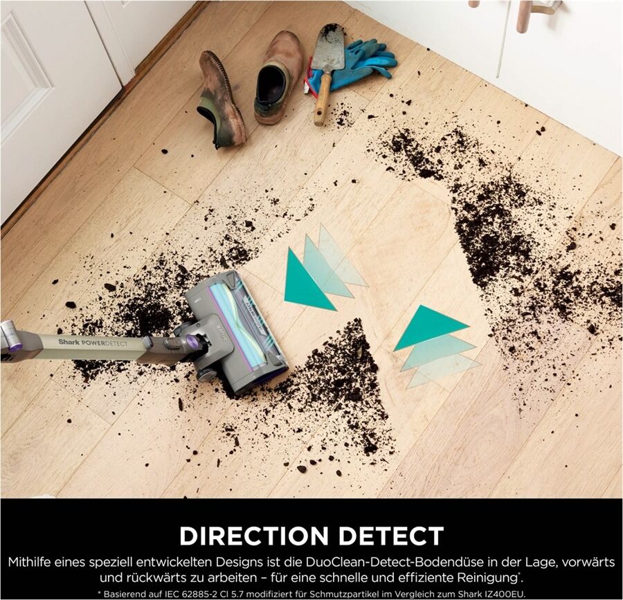 **** Basierend auf IEC 62885-2 Cl 5.7 modifiziert für Schmutzpartikel im Vergleich zum Shark IZ400EU.