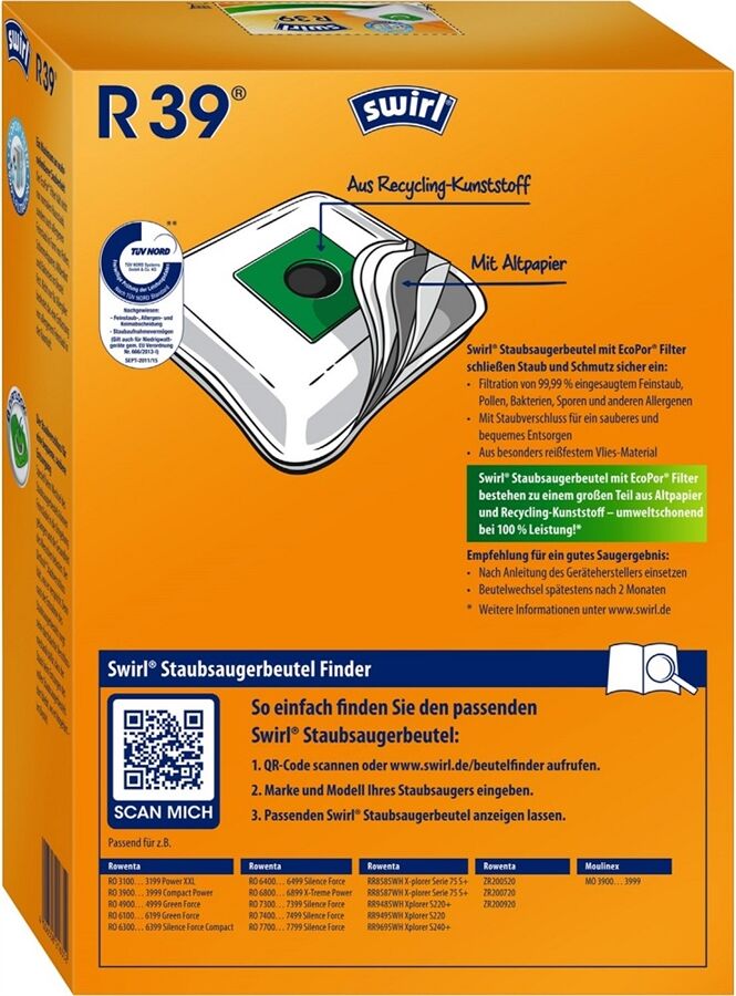 R 39 EcoPor® Staubsaugerbeutel von Swirl®