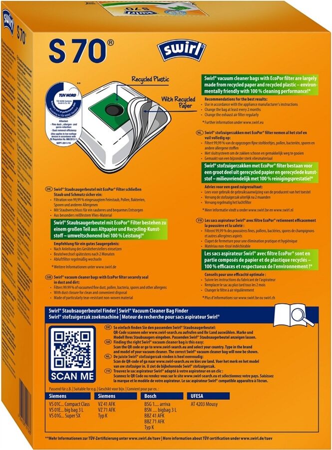 S 70 EcoPor® Staubsaugerbeutel von Swirl®